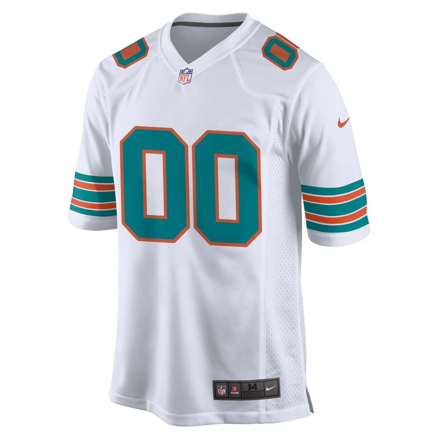 We want fans to celebrate their fandom by customizing and personalizing certain products. For these customizable products. including jerseys. we invite customers to tell us how they would like their preferred name or other text to appear by typing that text into the field indicated. However. just because a customer is able to type proposed customization text into the field and is able to complete the order through the website. not all proposed customization text will be accepted. Please note. Fanatics may reject and cancel any customization order for any reason. including for messages that are deemed offensive or inappropriate. Capture your team's identity in a fresh and innovative way with this Miami Dolphins Alternate Custom Game Jersey from Nike. It features team graphics that let everyone know where your allegiance lies. Ensure you're outfitted properly for the next game by grabbing this spirited Miami Dolphins gear.
