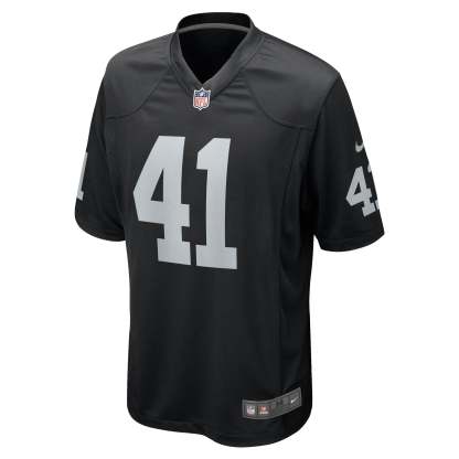 Rep the on-field look of your favorite Las Vegas Raiders player with this Robert Spillane Game jersey by Nike. Its heat-sealed graphics provide a kickoff-ready aesthetic while also offering a comfortable. lightweight feel. Designed for everyday movement. this jersey has a tailored fit and features mesh side panels for added ventilation as you celebrate every big play by Robert Spillane this season.
